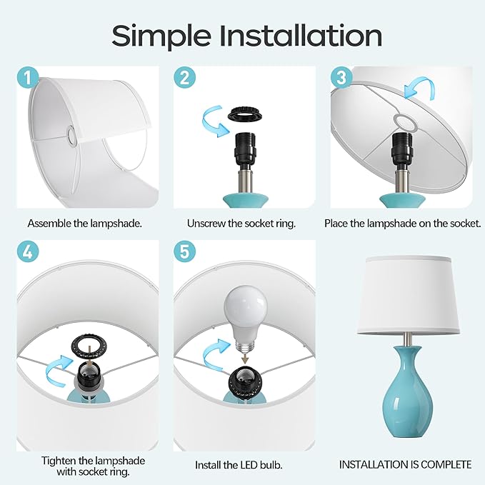 - Tool-Free Assembly: please note that the lampshade in your package has been carefully rolled into a cylindrical shape for compact shipping. The product features tool-free assembly and can be installed within minutes using our included step-by-step guide. Should you encounter any difficulties during installation, please don't hesitate to contact our support team for immediate assistance