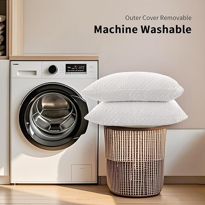 - Breathable & Washable Cover for Cool Comfort: The removable outer cover is made of ultra-soft, breathable fabric with moisture-wicking technology, machine-washable designed, it keeps your bed pillow fresh
