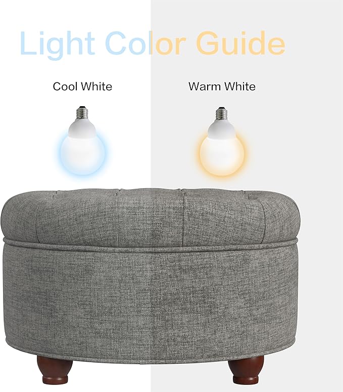 - STORAGE OTTOMAN: Created with premium soft and durable woven fabric our Round Ottoman with Storage offers a timeless style | Perfectly completed with tapered wood legs in a mid tone walnut finish along with button tufting on top