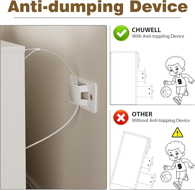 - 【Elegant and Modern Dresser】CHUWELL dresser for bedroom is composed of white and black color,which is the most classic of simple style. Its stylish and elegant style, complete with rounded handles, adds a cozy touch to any space. The white dresser exquisite craftsmanship enhances the beauty of any space, creating a clean and tidy atmosphere