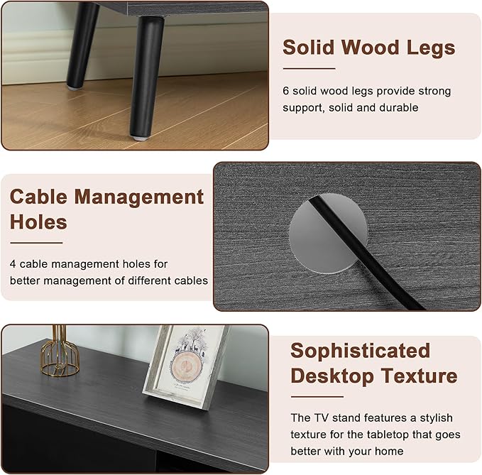- 【Sturdy & Durable】- This TV stand is made of thickened and wear-resistant tabletop and high-quality density board frame, which increases the weight-bearing capacity and durability of the TV stand. To ensure stronger weight-bearing capacity, the bottom of the TV cabinet uses sturdy 6 solid wood legs with a weight-bearing capacity of 150 lbs.