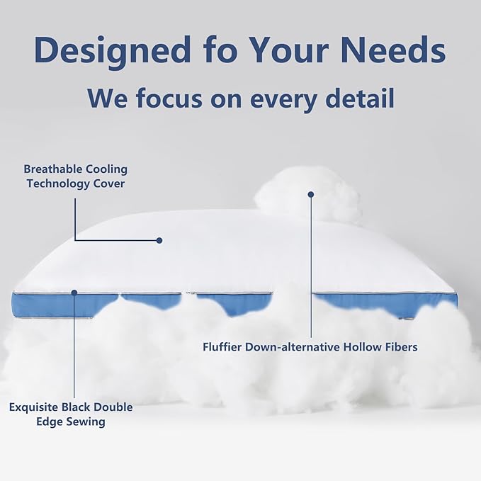 - Soft and Breathable Material: The pillows are made of premium 3D breathable microfiber material, which has better ventilation and heat dissipation. The soft lightweight microfiber recreate the luxurious plushness of real down, bringing you amazing huggable softness to indulge in. The silky-smooth cover completes the down-like coziness for you to snooze the night away.