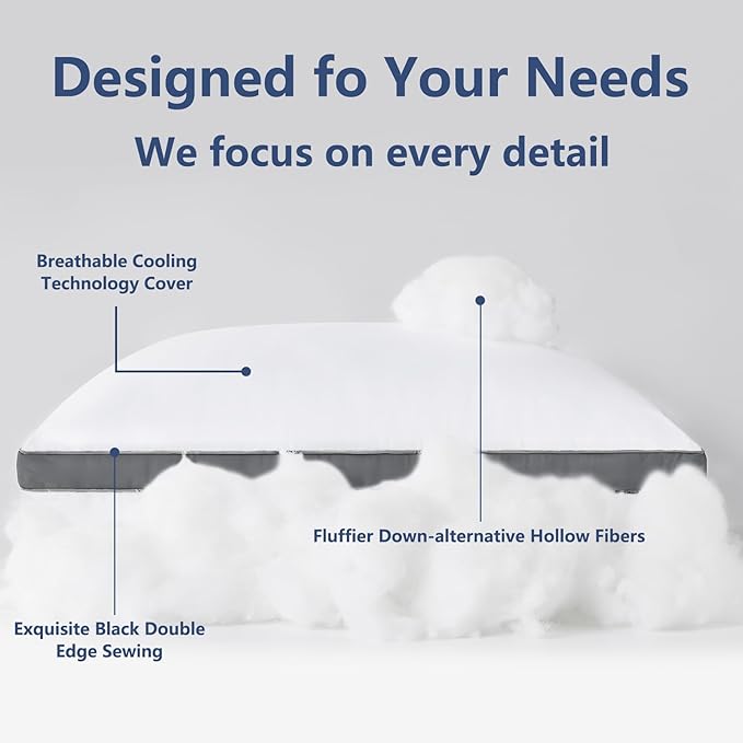 - Soft and Breathable Material: The pillows are made of premium 3D breathable microfiber material, which has better ventilation and heat dissipation. The soft lightweight microfiber recreate the luxurious plushness of real down, bringing you amazing huggable softness to indulge in. The silky-smooth cover completes the down-like coziness for you to snooze the night away.