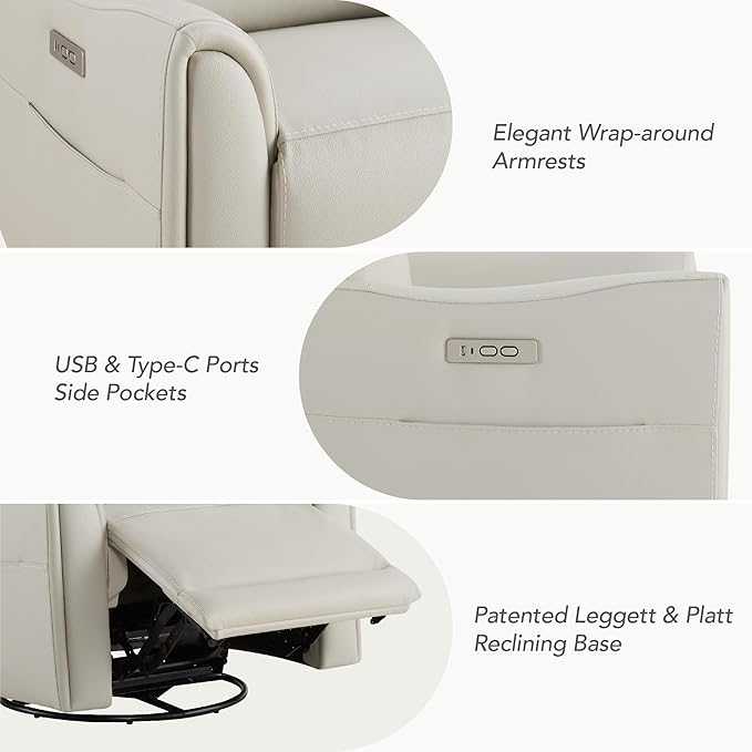 Watson & Whitely Power Recliner Chairs for Adults, Swivel Rocker Recliner Chair with Charging Ports for Living Room, Faux Leather RC011 (Cream)