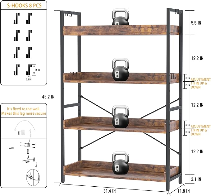 - 【Adjustable Shelves】The middle shelves of this industrial bookshelf is adjustable, allowing you to customize each shelf to your own requirements.