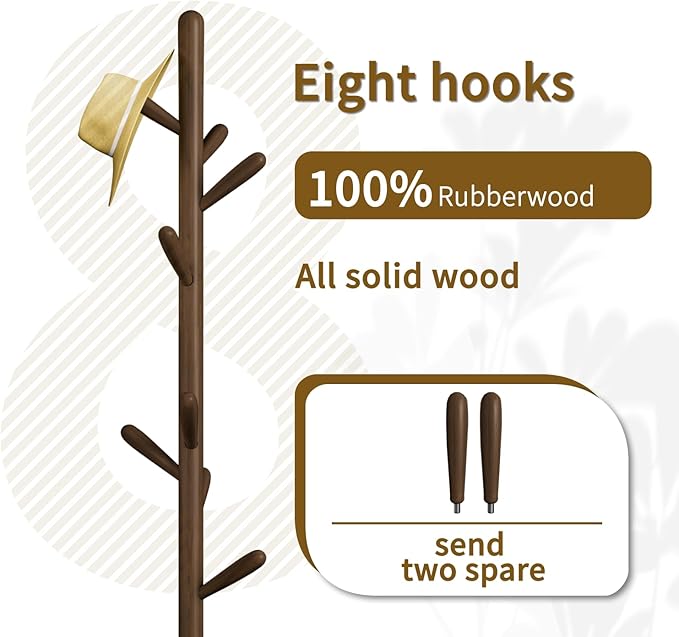 - 【Premium Material】Awatiwa wooden coat rack is made of high-quality Rubber wood and Solid Wood Round Base for optimal stability that supports multiple garments and outerwear.
