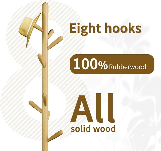 - 【Premium Material】Awatiwa wooden coat rack is made of high-quality Rubber wood and Solid Wood Round Base for optimal stability that supports multiple garments and outerwear.