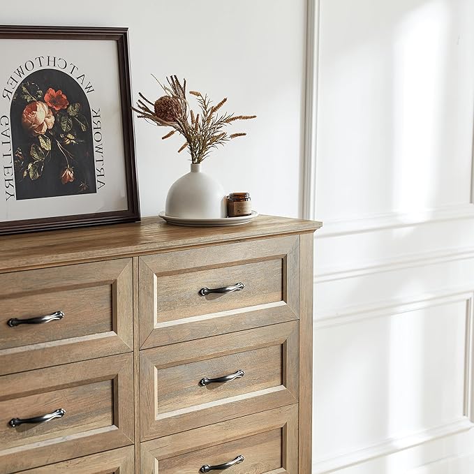 - Modern Farmhouse Charm – Effortlessly blending rustic warmth with contemporary elegance, this dresser features vintage-inspired handles, clean lines, and a rich wood-grain finish for timeless appeal. Whether your style leans farmhouse, Scandinavian, or eclectic, it adds a cozy yet sophisticated touch that enhances any room with character and charm