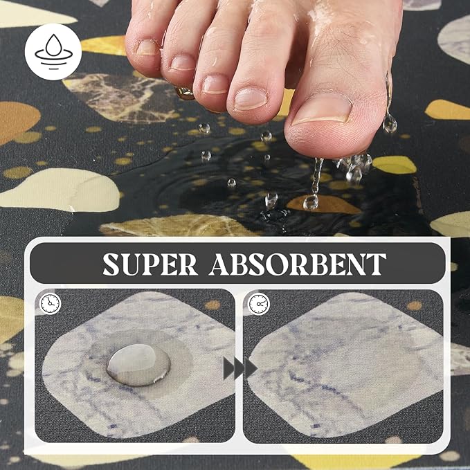 - ABSORBENT :This is a soft version of the diatomaceous earth bath mat. The bathroom rug can suck up dripping water when you come out from bathtub or shower.Faux suede surface dry quickly.Always keep your bathroom clean and tidy