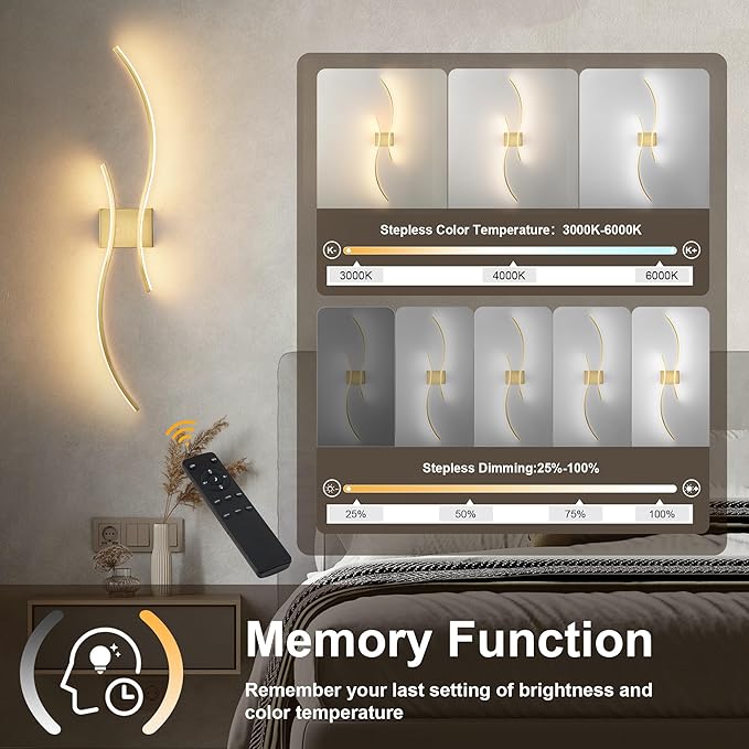 - Adjustable Colors & Brightness,Memory Function: You can choose different color temperature modes (3000K-6000K) through the remote control according to your needs, and adjust the brightness you want (20%-100%) . The color temperature and brightness can be infinitely adjusted. Memory function can remember your last color and brightness setting. So you don't need to adjust the color and brightness every time.In addition, the remote control also comes with a night light and timing function, allowing you to read without disturbing your partner's sleep