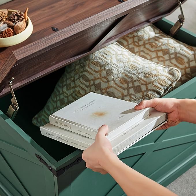 - EXTRA STORAGE SPACE: This farmhouse coffee table features a dual flap top that opens to reveal enormous storage for you to stow spare blankets,books and controllers