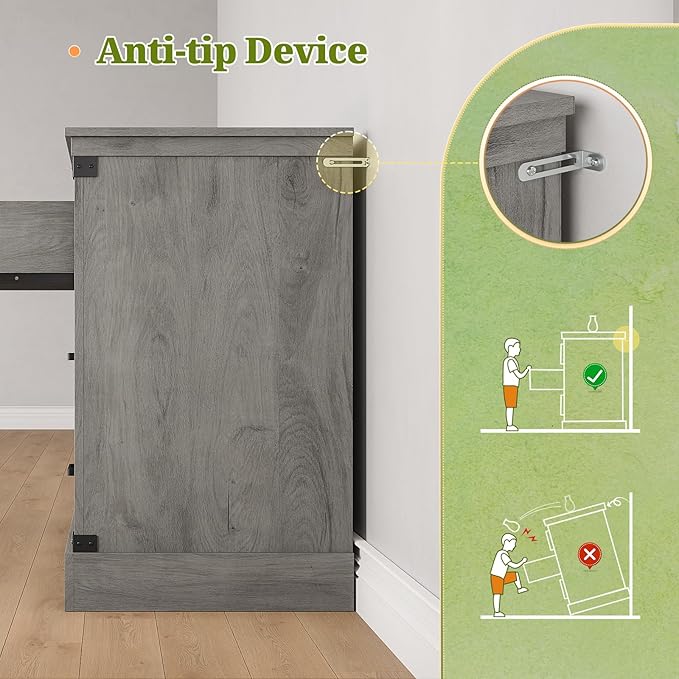 - 【7 Drawers Bedroom Dresser】Dimensions: 55.1" W x 31.5" H x 15.8" D. This large gray dresser features 4 spacious large drawers and 3 small drawers, providing ample space for categorized storage of various items, from clothes to accessories. The wide tabletop at the top can serve as an dresser TV stand entertainment center or display your decorations, photo frames, plants, etc. The large storage space meets all your storage needs and effectively keeps your room neat and organized.