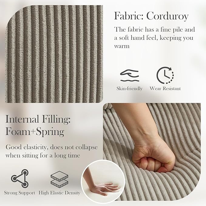 - Luxurious Fabric: The fabric of the small accent chair is corduroy fabric, which is soft and comfortable to the touch; the interior is filled with high-density sponge, which has good resilience and does not easily collapse after sitting for a long time