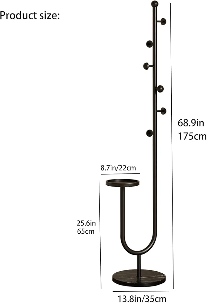 - 【Multifunctional Storage】:Modern freestanding coat tree with 6 hooks and a 22cm diameter tray. Not only can you hang coats, bags and hats, but you can also put your cell phone, glasses, headphones, keys and other items in the tray, which is deepened to protect items from falling