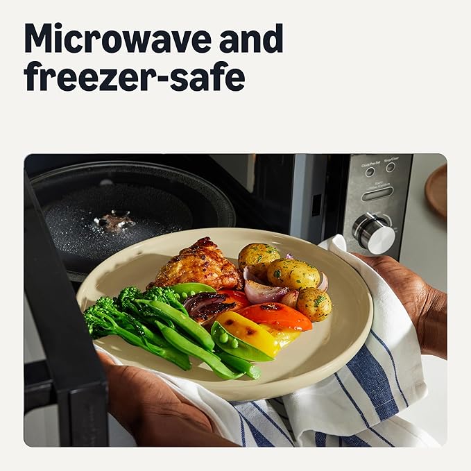 Amazon Basics Glazed Stoneware Dinner Plates, Ceramic 4-Piece Set, Microwave and Dishwasher-Safe, 10.5 in., Ivory