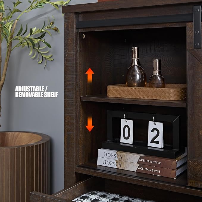 - 【A Statement Piece for Any Room】Make a bold statement with this stunning piece. Whether used in the living room, bedroom, or dinning room, the sliding barn doors add a stylish touch that complements any decor.