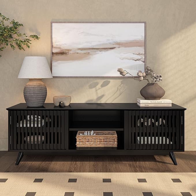 - Perfect for Your TV: Designed to fit TVs up to 65 inches, this mid mod TV stand provides the perfect home for your entertainment setup, featuring cord cutouts to keep your devices plugged in and organized.