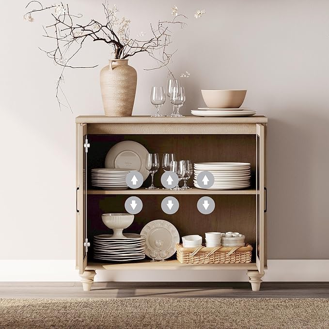 - 【Adjustable Shelf & Glass Door】Designed with height adjustable shelf, you could manage the storage space according to the item size. It maximizes the available space of the room while providing functional storage. Additionally, the transparent tempered glass door of the light oak tv stand make it easy for you to find items you need.