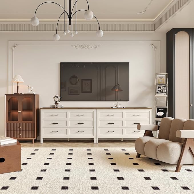 - Large Storage Capacity: This wood dresser has 6 large drawers, greatly increasing the storage space and allowing you to categorize socks, clothes, plush toys, cozy blankets or pillows. The depth of each drawer is 4.3 inches, allowing you to easily fit any adult's clothes. Its spacious tabletop serves as a fashionable canvas, beautifully displaying photo frames, artwork, and more.