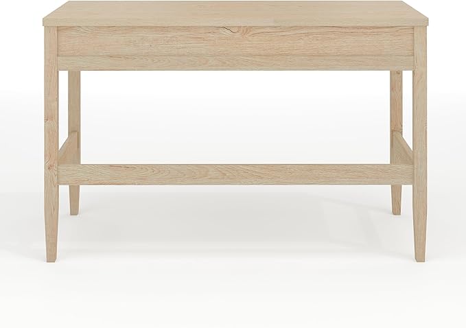 Martha Stewart Rhett Home Office Desk with 3 Drawers and Tapered Legs in Light Natural with Antique Bronze Hardware