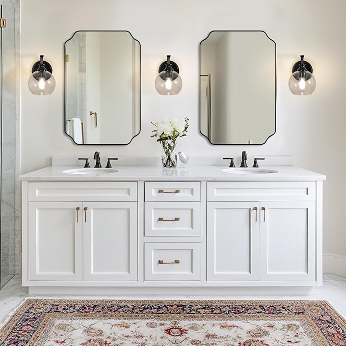 - Bright & Versatile Illumination: Equipped with E26 bulb bases (bulbs not included), this light supports up to 60W per socket for ample brightness; The clear glass shades diffuse light evenly, ideal for grooming tasks or creating a warm ambiance; Whether for morning routines or evening relaxation, it adapts to your lighting needs