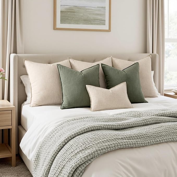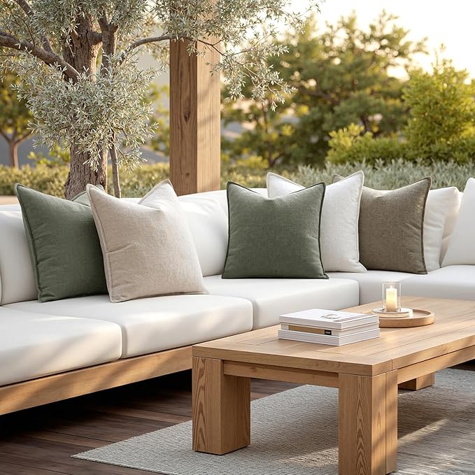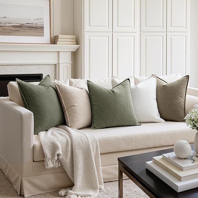 MIULEE Decorative Linen Pillow Covers 24x24 Inch Olive Green Boho Farmhouse Neutral Couch Throw Pillows for Bed Pack of 2 Accent Outdoor Pillowcase Modern Sofa Cushion Livingroom Home Decor