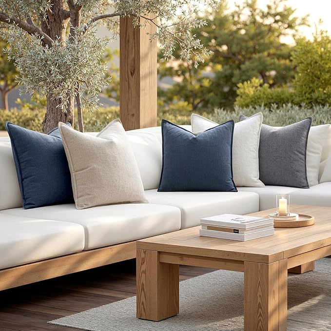 MIULEE Decorative Linen Pillow Covers 18x18 Inch Indigo Blue Boho FarmhouseNeutral Couch Throw Pillows for Bed Pack of 2 Accent Coastal Modern Pillowcase Summer Sofa Livingroom Home Decor
