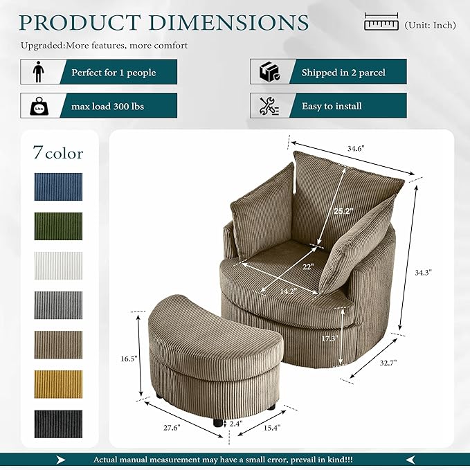 - Swivel Chair with Hidden Storage Footrest:Upgrade your comfort with our versatile swivel chair, featuring a convenient storage footrest designed to keep small items neatly tucked away. Whether it’s your remote, gaming accessories, or a cozy throw blanket, this clever space keeps clutter out of sight while adding extra functionality.