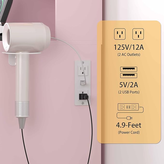 - 【Makeup Vanity Desk with Charging Station & Hair Dryer Holder】Designed for convenience, this vanity desk with drawers and mirror includes 2 AC outlets and 2 USB ports to power your hair dryer, curling iron, phone, or beauty devices. A dedicated holder keeps your hair tools organized and ready.