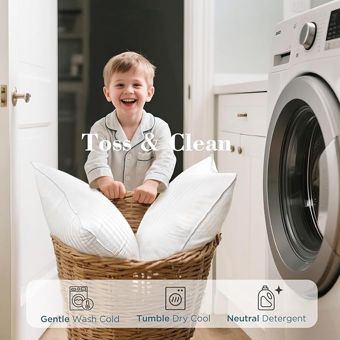 - Effortless Care: Fully machine wash and dry ready for modern lifestyles. Advanced shape-retention preserves plump freshness wash after wash, ensuring like-new performance with minimal maintenance. Measuring in Queen Size – 20" x 27.5"
