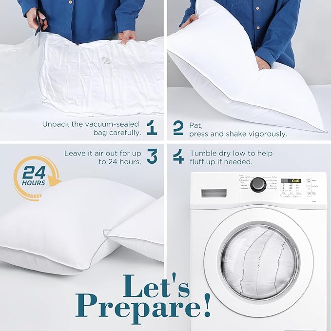 - Effortless Care: Designed with modern convenience in mind, this pillow set is fully machine-friendly, making the cleaning routine a breeze. Its shape-lock structure resists clumping even with frequent washes for consistent freshness. Measuring in King Size – 20" x 34"
