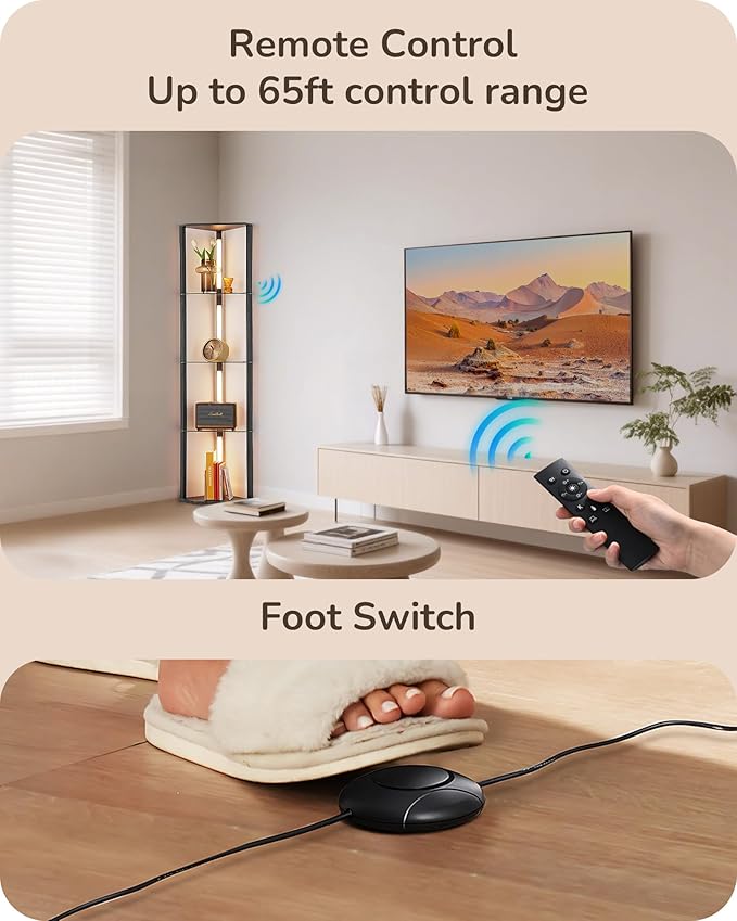 - [Dual Control Options] Easily operate the corner floor lamp using the included remote control (up to 65ft range) or the convenient foot switch—ideal for no-touch operation and enhanced safety