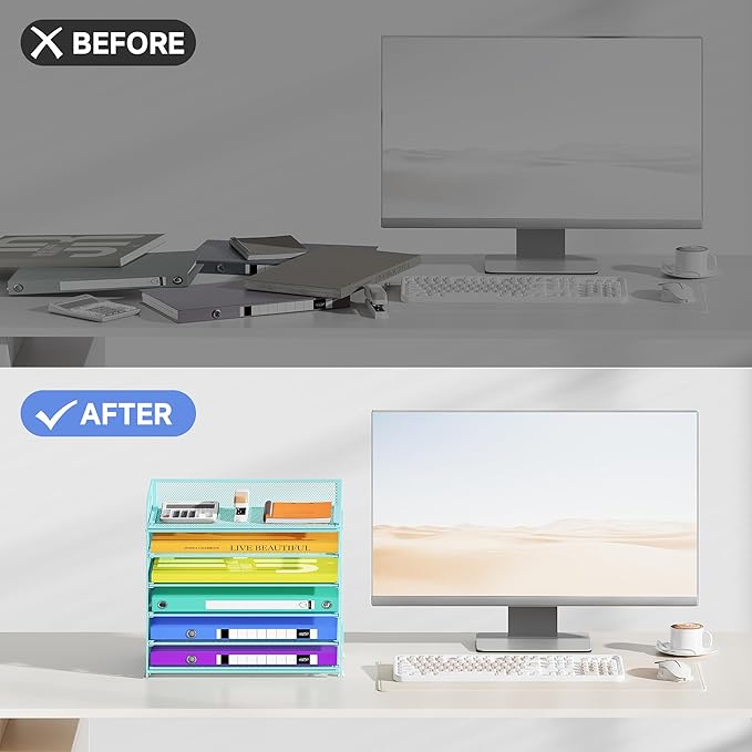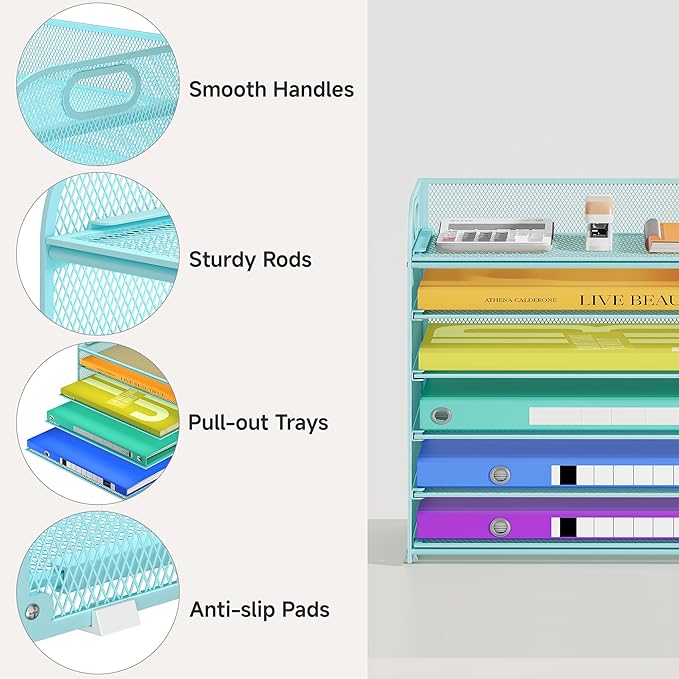 - 【EFFICIENT DESK ORGANIZER】Keep your desk tidy and clutter-free with our 6-Tier Paper Organizer with Handle. This file organizer provides ample space for sorting and storing papers, letters, documents, folders, books, magzines, staplers, caculators and sticky notes.