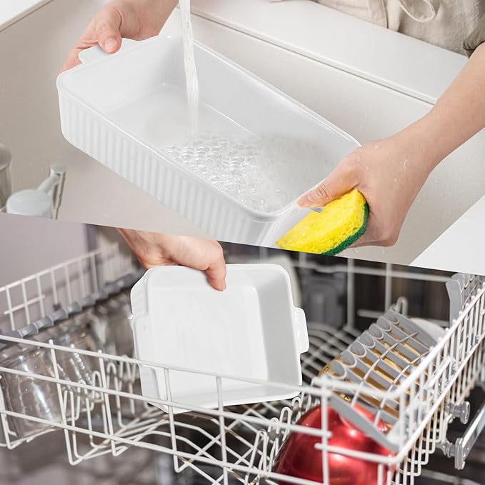 - Versatile 2-Piece Set - Includes large 4.4QT (13"x9.5"x3.1") and medium 1.8QT (12"x7"x2.3") ceramic baking dishes perfect for casseroles, lasagna, roasted turkey, cakes, and desserts