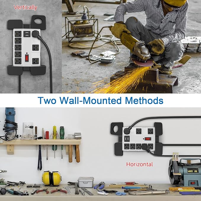 - Workshop 8 outlets power strip surge protector 2700J enough for larger surges, with 6FT 14AWG/3C power cord. The cord wrap velcro design for organize cable.