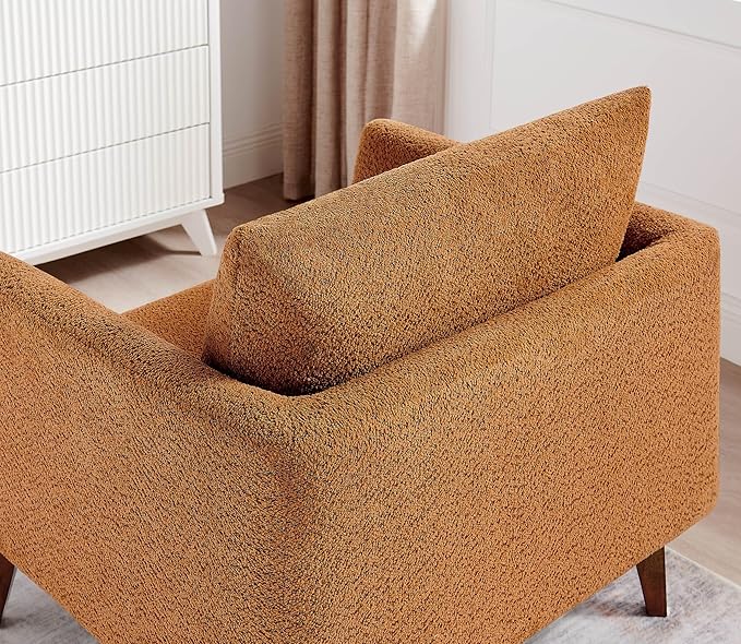 Oversized Accent Chair Modern Boucle Armchair for Living Room- 37" Wide Accent Chair with Solid Wood Legs, Curry Upholstered Lounge Chair for Bedroom & Office, Cozy Reading Chair (Easy Assembly)