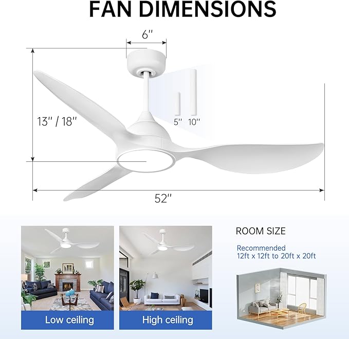 - Time Function: 1/4/8H timing setting, automatic shutdown, the smart sleep timer ceiling fan will light up to make sleep more comfortable and relax all night long, also save the energy.