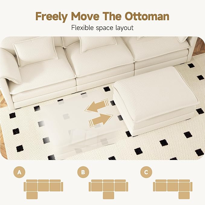 Real Relax 75.3'' Modular Sectional Sofa, Loveseat Corduroy Convertible Couch with 4 Pillows and 2 Armrest Pillows for Living Room, Office and Leisure Places, Beige