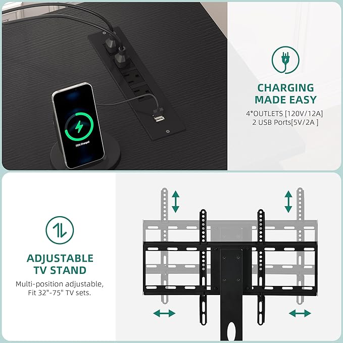 - TV Stand with Mount: Elevate your viewing game with our adjustable TV mount! Fit for TVs from 32'' to 75'', you can tweak it to perfection, up, down, left, or right! Want to go for a higher setup? Just mount it on the wall and enjoy