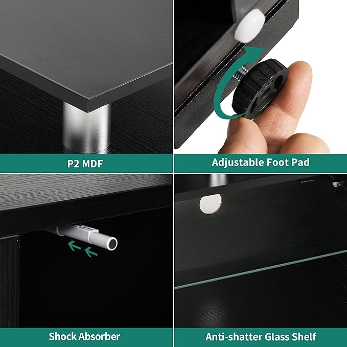 - Sturdy Storage: Built from sturdy engineered wood, this entertainment center is built to endure. With 4 roomy open areas & 2 hidden compartments to keep clutter out of sight, it combines style with practicality. Plus, the tempered glass is break-proof for lasting fun