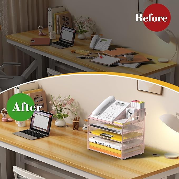 - Durable Steel Mesh Construction for Long-Lasting Use: Crafted from high-quality steel mesh, this file organizer for desk combines strength and style. The sleek, modern design not only enhances the look of your office but also ensures durability, making it a reliable choice for your desk organization needs
