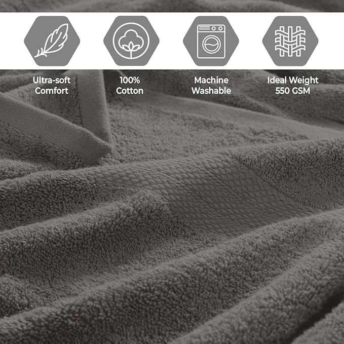 - Premium 100% Cotton Towels: Made from soft, breathable, and highly absorbent cotton for a soothing, gentle touch on face, body, and hair after every shower.