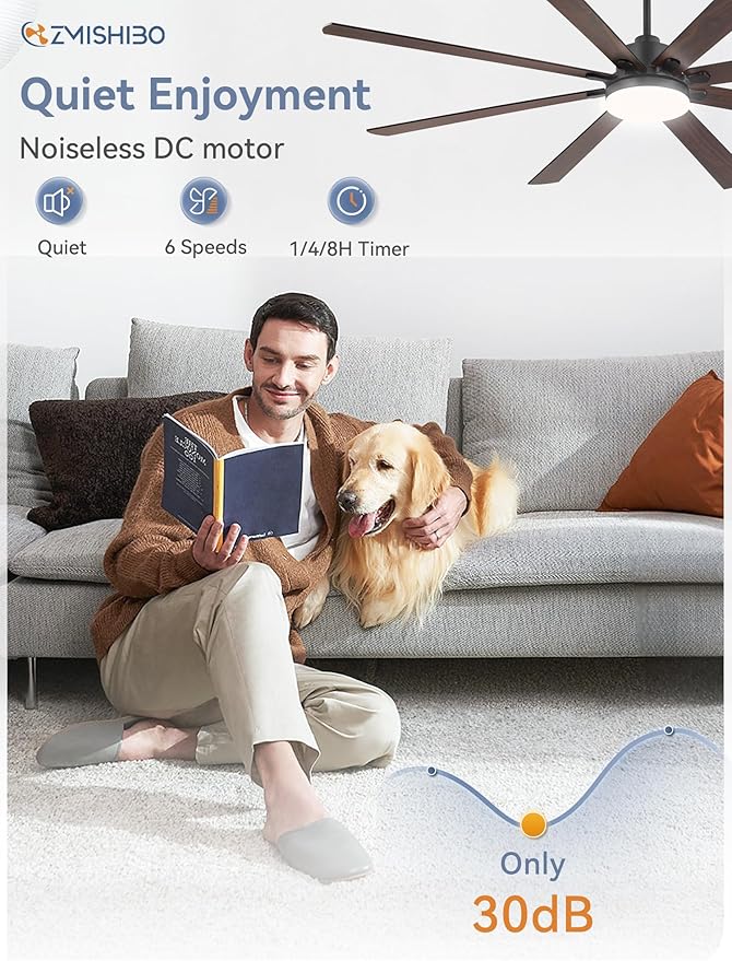 - Reversible DC Motor: The forward/reverse function provides comfortable airflow year-round, delivering cool airflow in the summer and warm airflow in the winter. It enhances the airflow in the room, maximizing the efficiency of the ceiling fan. This industrial ceiling fan with light is equipped with a high-quality DC motor, which is quieter and more energy-saving than an AC motor, with a noise level of less than 30 dB.