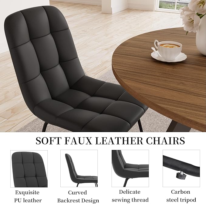 - Modern Round Table Set: This stylish round dining table set features a round table crafted from thick MDF material with a unique textured finish, complemented by 4 PU leather chairs with ergonomic curved backs and high-elastic sponge seats.