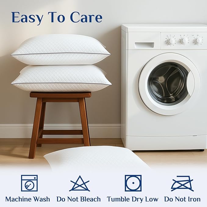 - Easy to Fluff, Gentle to Care:Your pillows arrive vacuum-sealed for hygiene. After unpacking, simply fluff them by hand or place them in the dryer with a clean towel on low heat for 5–10 minutes to help restore their full shape. Any wrinkles from compression will naturally fade during use. To preserve the quality of the fabric, we recommend avoiding direct ironing. Machine washable and dryer safe for effortless maintenance