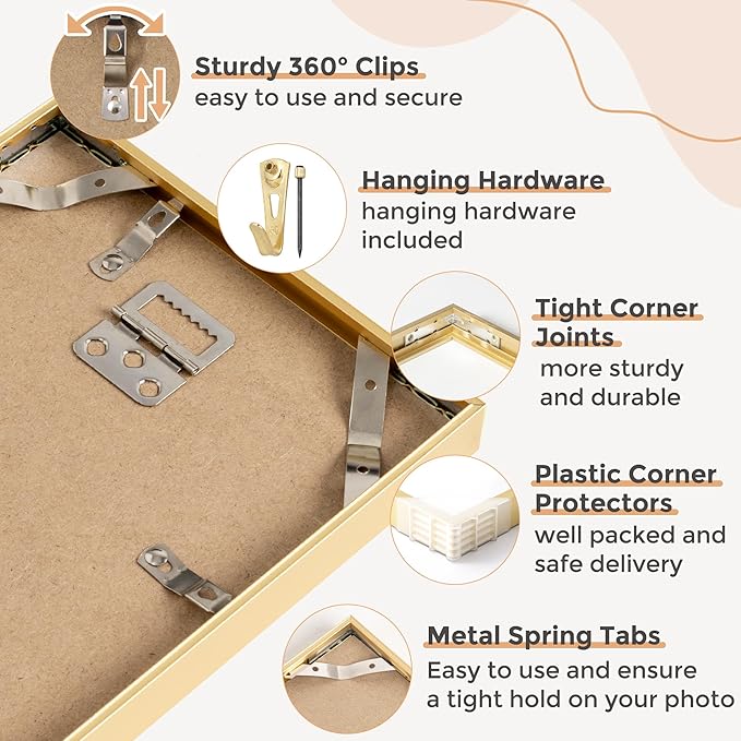 - Clean Mat-Free Presentation: Showcase memories directly against crystal-clear 2mm glass for a modern, borderless look. Our 17x22 metal frame Perfectly displays photos, certificates, and even delicate fabrics without distracting mats