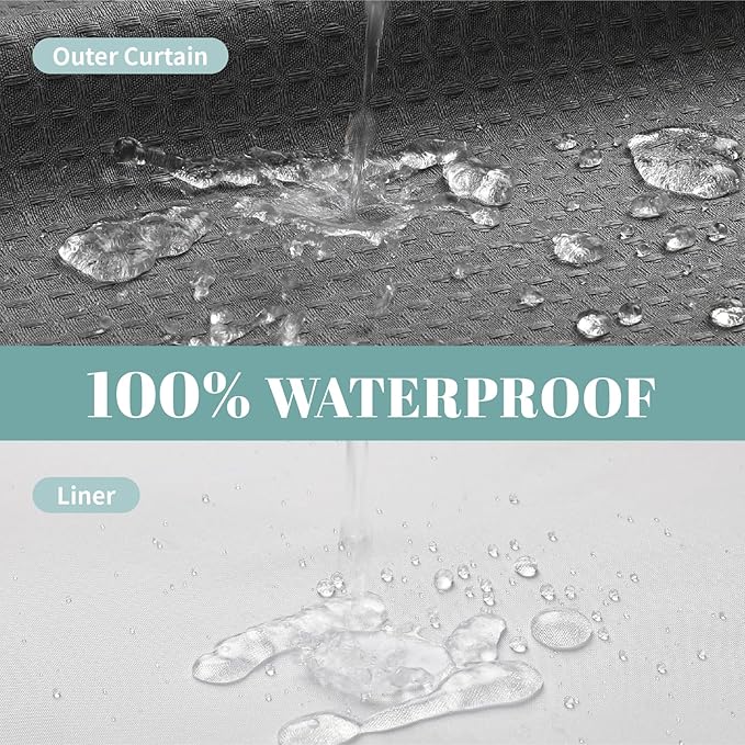 - 【Standard Size】:60"W x 74"L(same size as 60"Wx72"L hooked shower curtain) for shower curtain and 59"W x 54"L for snap-in liner.Fits most standard-sized bathroom