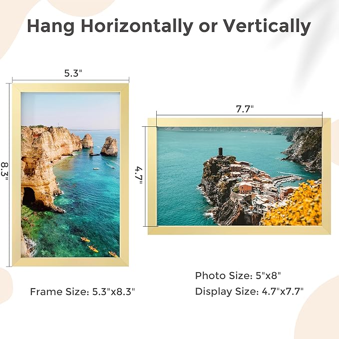 - Premium Aluminum Craftsmanship: Our 5x8 picture frame features aircraft-grade aluminum with a durable brushed finish (5 colors). The ultra-slim 0.3" profile and mat-free design create gallery-worthy displays for photos, art, or textiles in any space