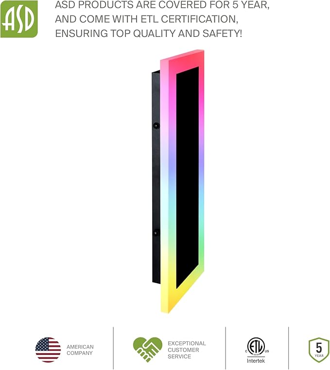 ASD LED 18" Long Wall Mount Light Fixture, Outdoor & Indoor Linear Sconce | RGBW, Smart, Waterproof, Anti-Rust, ETL Listed | 12W 590LM 2700-6500K 100-277V | Exterior Porch Lighting | Black