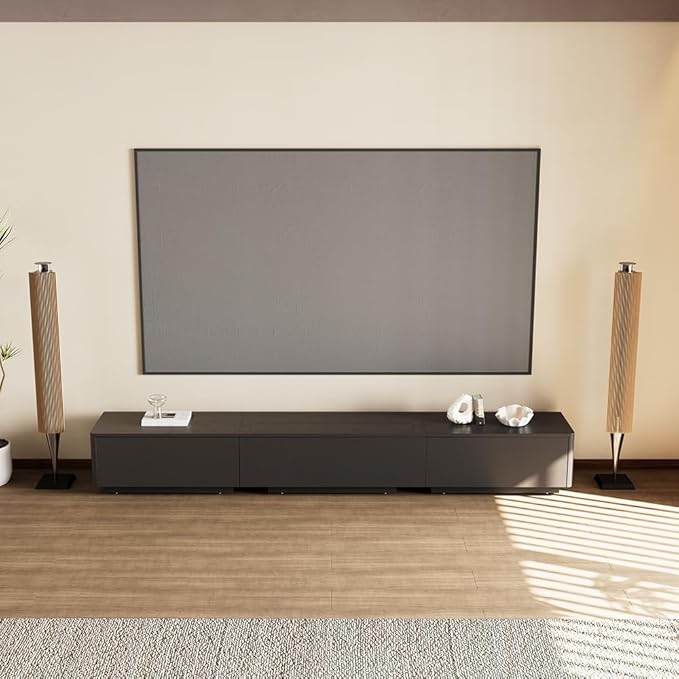 - [ Sleek Mid-Century Modern Design ] Our Ultra Short Throw Projector TV Cabinet is crafted with a sleek mid-century modern design, adding a touch of contemporary elegance to your home entertainment setup.